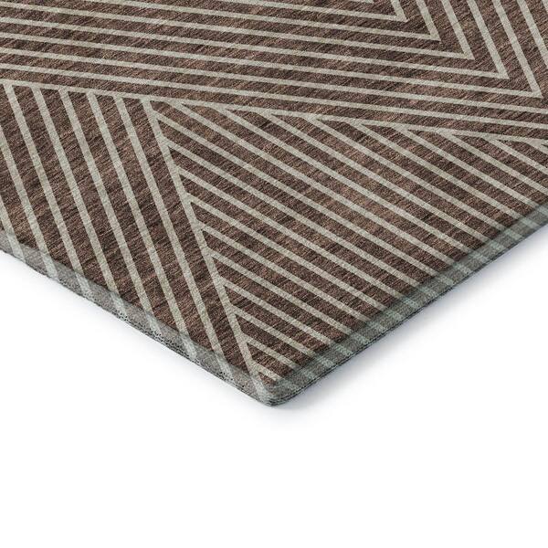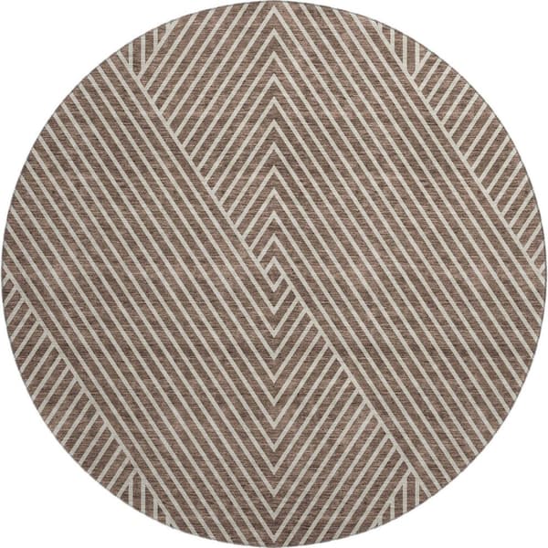Mayfield Premium Machine Washable Abstract AMF937 Brown 8 ft. x 8 ft. Round Rug