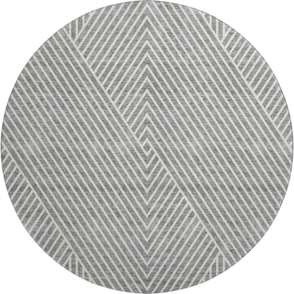 Mayfield Premium Machine Washable Abstract AMF937 Gray 8 ft. x 8 ft. Round Rug
