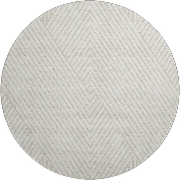 Mayfield Premium Machine Washable Abstract AMF937 Ivory 8 ft. x 8 ft. Round Rug