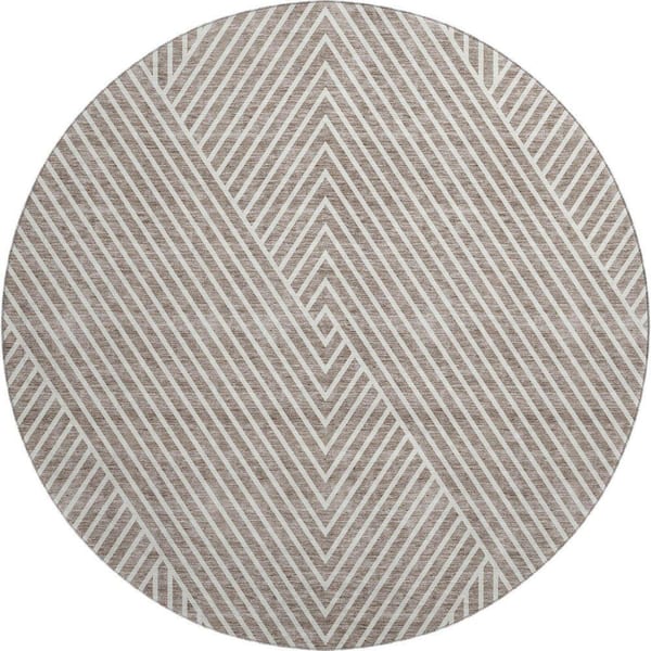 Mayfield Premium Machine Washable Abstract AMF937 Taupe 8 ft. x 8 ft. Round Rug