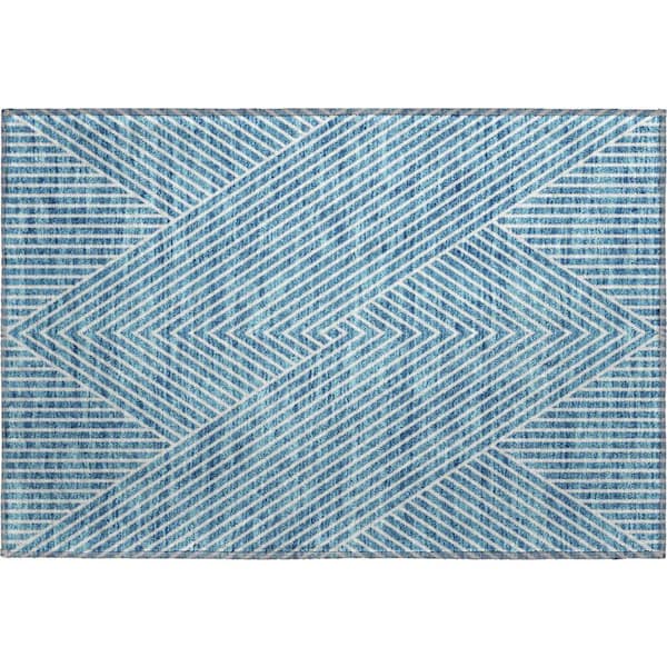 Mayfield Premium Machine Washable Abstract AMF937 Teal 2 ft. x 3 ft. Area Rug
