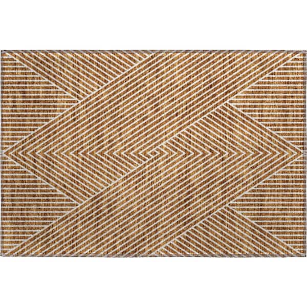 Mayfield Premium Machine Washable Abstract AMF937 Terracotta 2 ft. x 3 ft. Area Rug