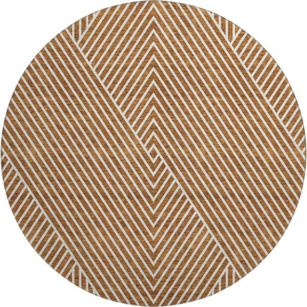 Mayfield Premium Machine Washable Abstract AMF937 Terracotta 8 ft. x 8 ft. Round Rug