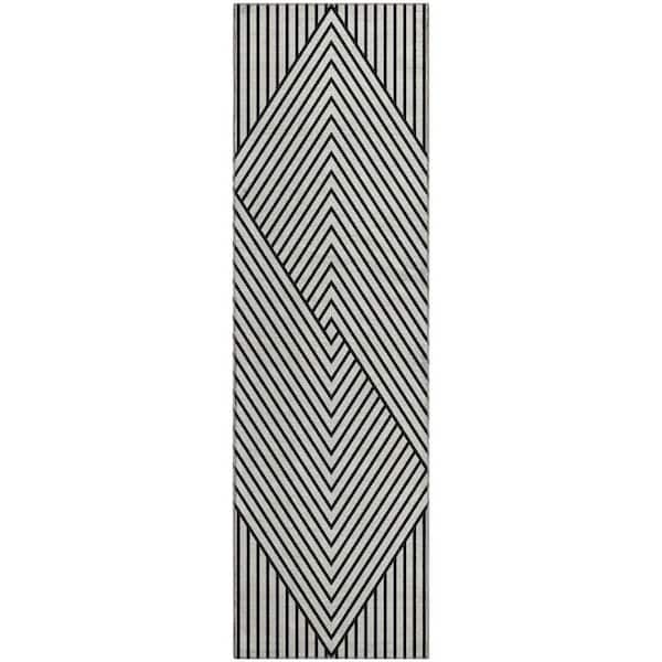 Mayfield Premium Machine Washable Abstract AMF937 White 2 ft. 3 in. x 7 ft. 6 in. Runner Rug