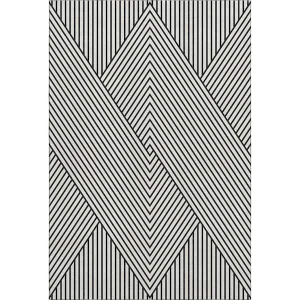 Mayfield Premium Machine Washable Abstract AMF937 White 5 ft. x 7 ft. 6 in. Area Rug