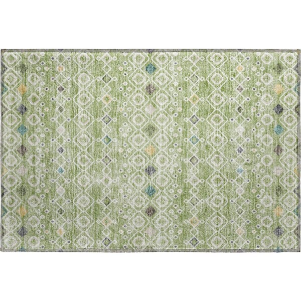 Mayfield Premium Machine Washable Abstract AMF938 Aloe 2 ft. x 3 ft. Area Rug