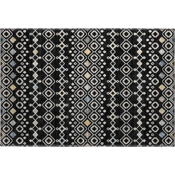 Mayfield Premium Machine Washable Abstract AMF938 Black 2 ft. x 3 ft. Area Rug