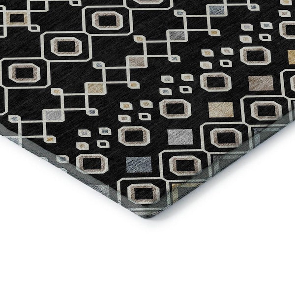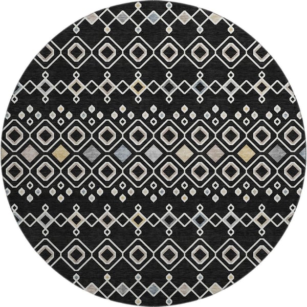 Mayfield Premium Machine Washable Abstract AMF938 Black 8 ft. x 8 ft. Round Rug