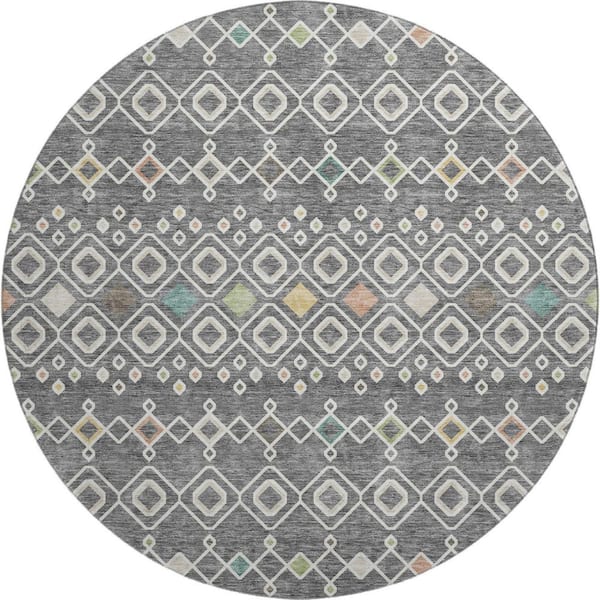 Mayfield Premium Machine Washable Abstract AMF938 Gray 8 ft. x 8 ft. Round Rug