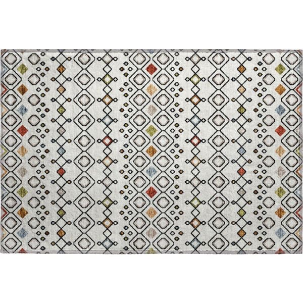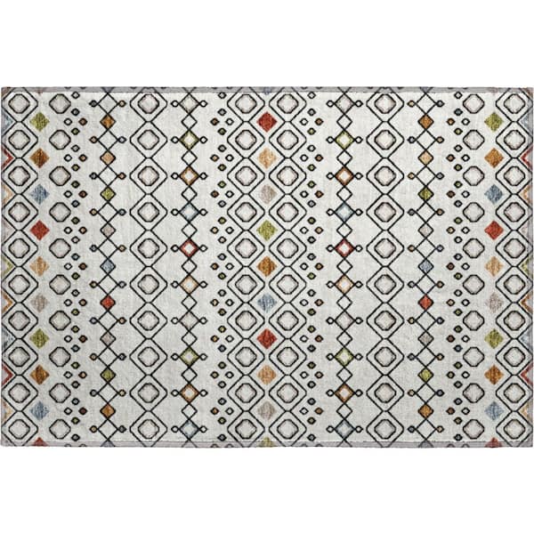 Mayfield Premium Machine Washable Abstract AMF938 Ivory 2 ft. x 3 ft. Area Rug