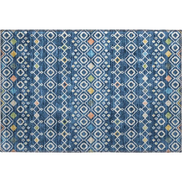Mayfield Premium Machine Washable Abstract AMF938 Navy 2 ft. x 3 ft. Area Rug