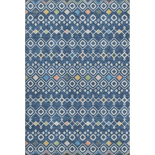 Mayfield Premium Machine Washable Abstract AMF938 Navy 3 ft. x 4 ft. Area Rug