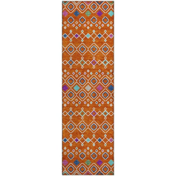 Mayfield Premium Machine Washable Abstract AMF938 Orange 2 ft. 3 in. x 7 ft. 6 in. Runner Rug