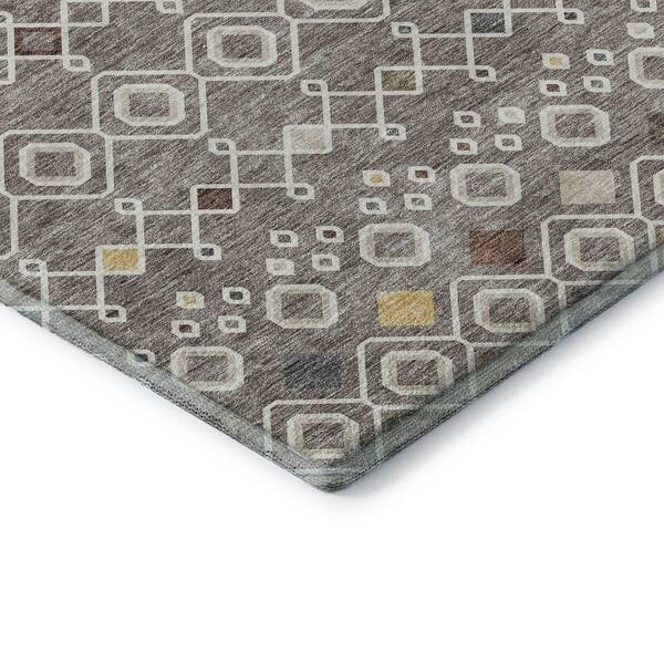 Mayfield Premium Machine Washable Abstract AMF938 Taupe 8 ft. x 8 ft. Round Rug