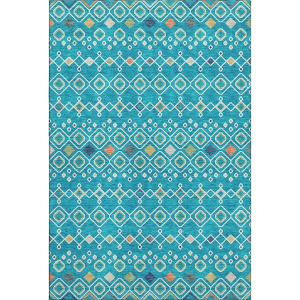 Mayfield Premium Machine Washable Abstract AMF938 Teal 5 ft. x 7 ft. 6 in. Area Rug
