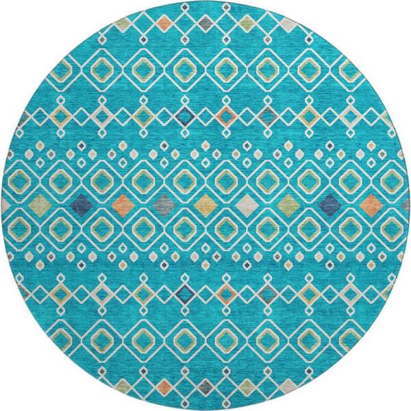 Mayfield Premium Machine Washable Abstract AMF938 Teal 8 ft. x 8 ft. Round Rug