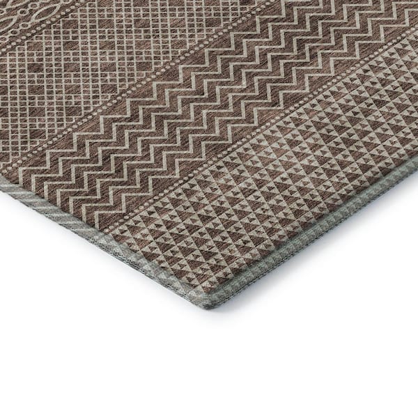 Mayfield Premium Machine Washable Abstract AMF939 Brown 8 ft. x 8 ft. Round Rug