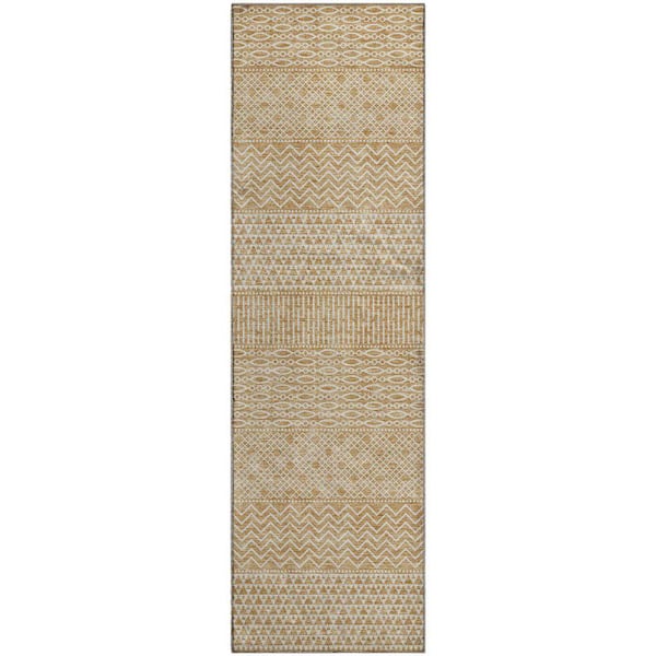 Mayfield Premium Machine Washable Abstract AMF939 Gold 2 ft. 3 in. x 7 ft. 6 in. Runner Rug