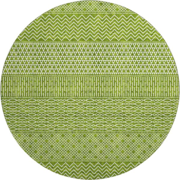 Mayfield Premium Machine Washable Abstract AMF939 Lime 8 ft. x 8 ft. Round Rug