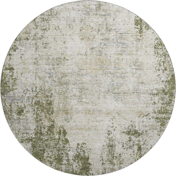 Mayfield Premium Machine Washable Abstract AMF940 Olive 8 ft. x 8 ft. Round Rug