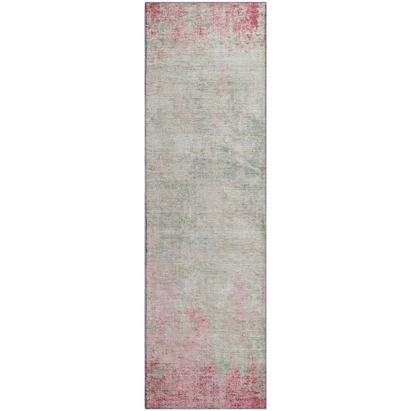 Mayfield Premium Machine Washable Abstract AMF940 Pink 2 ft. 3 in. x 7 ft. 6 in. Runner Rug