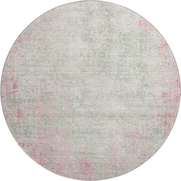 Mayfield Premium Machine Washable Abstract AMF940 Pink 8 ft. x 8 ft. Round Rug