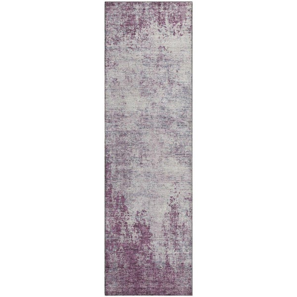 Mayfield Premium Machine Washable Abstract AMF940 Plum 2 ft. 3 in. x 7 ft. 6 in. Runner Rug