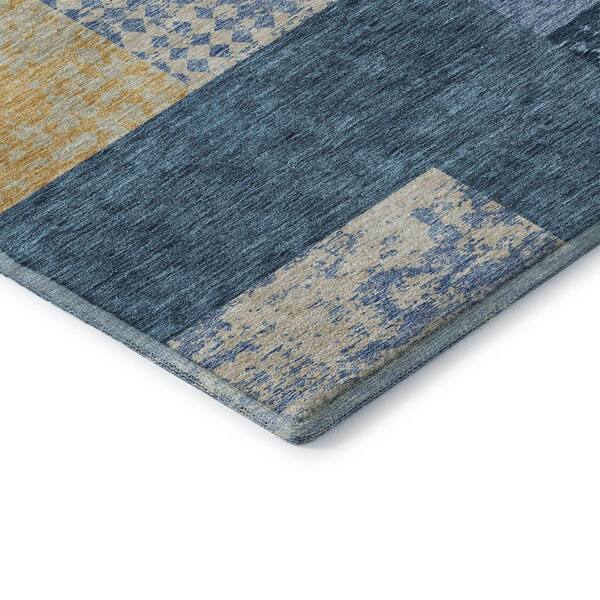 Mayfield Premium Machine Washable Abstract AMF941 Denim 8 ft. x 8 ft. Round Rug