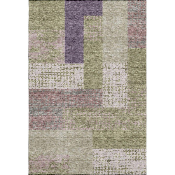 Mayfield Premium Machine Washable Abstract AMF941 Green 8 ft. x 10 ft. Area Rug