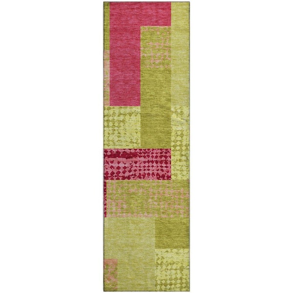 Mayfield Premium Machine Washable Abstract AMF941 Lime 2 ft. 3 in. x 7 ft. 6 in. Runner Rug