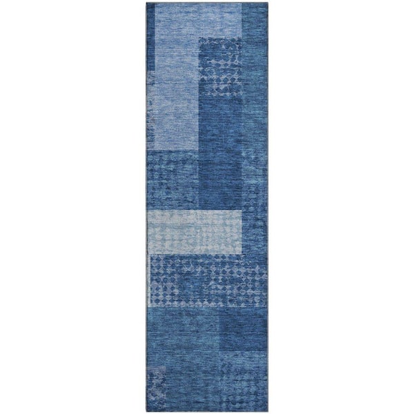 Mayfield Premium Machine Washable Abstract AMF941 Navy 2 ft. 3 in. x 7 ft. 6 in. Runner Rug