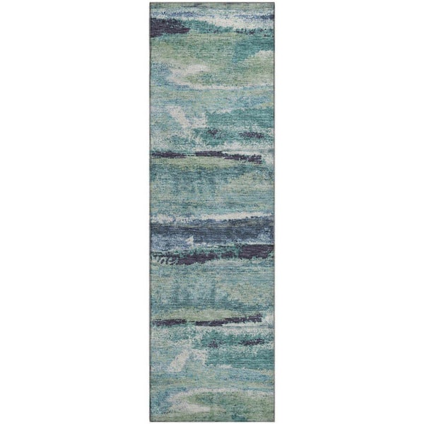 Mayfield Premium Machine Washable Abstract AMF942 Aloe 2 ft. 3 in. x 7 ft. 6 in. Runner Rug