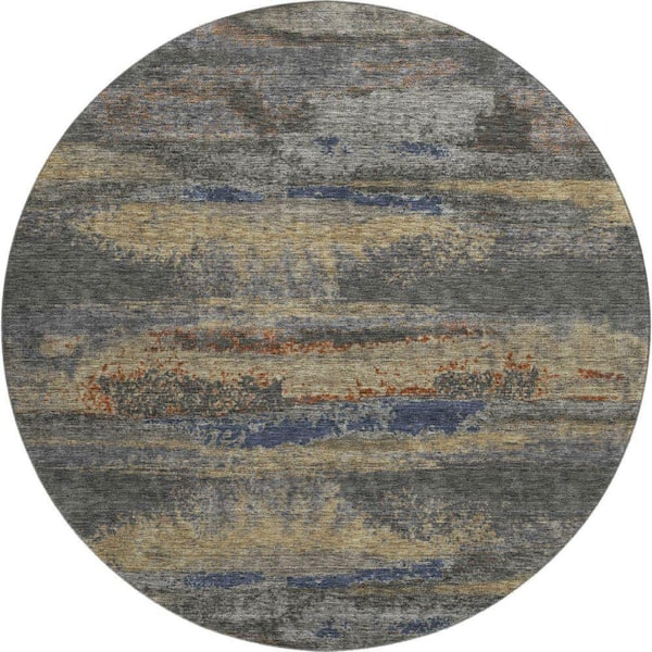 Mayfield Premium Machine Washable Abstract AMF942 Graphite 8 ft. x 8 ft. Round Rug