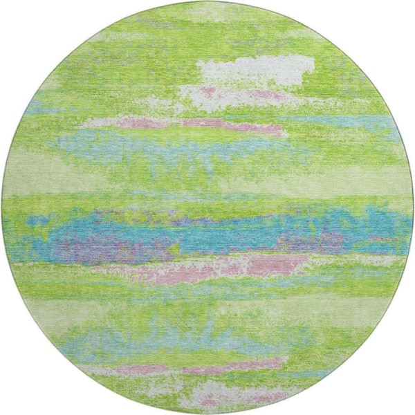 Mayfield Premium Machine Washable Abstract AMF942 Lime 8 ft. x 8 ft. Round Rug
