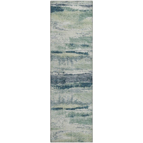 Mayfield Premium Machine Washable Abstract AMF942 Mint 2 ft. 3 in. x 7 ft. 6 in. Runner Rug