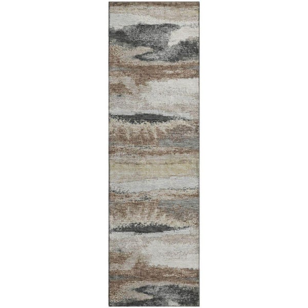 Mayfield Premium Machine Washable Abstract AMF942 Taupe 2 ft. 3 in. x 7 ft. 6 in. Runner Rug
