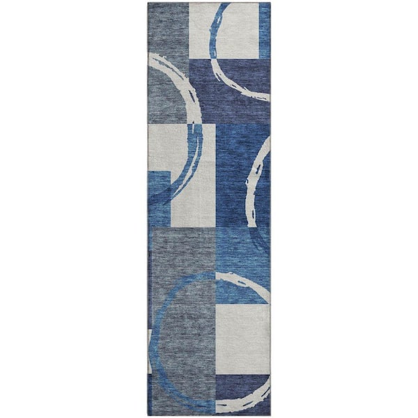Mayfield Premium Machine Washable Abstract AMF943 Blue 2 ft. 3 in. x 7 ft. 6 in. Runner Rug