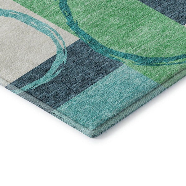 Mayfield Premium Machine Washable Abstract AMF943 Teal 3 ft. x 4 ft. Area Rug