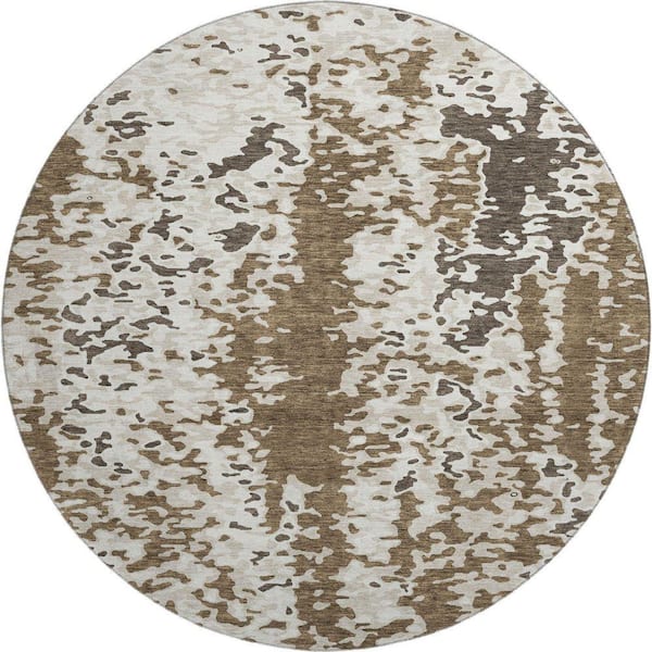 Mayfield Premium Machine Washable Abstract AMF944 Brown 8 ft. x 8 ft. Round Rug