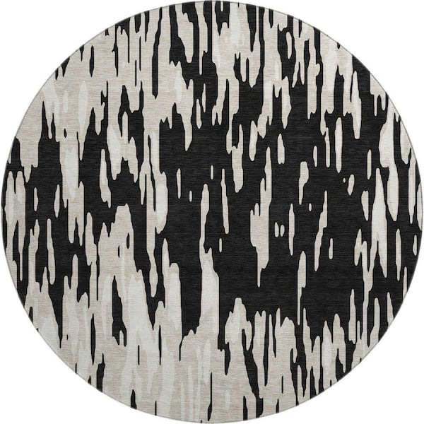 Mayfield Premium Machine Washable Abstract AMF945 Black 8 ft. x 8 ft. Round Rug