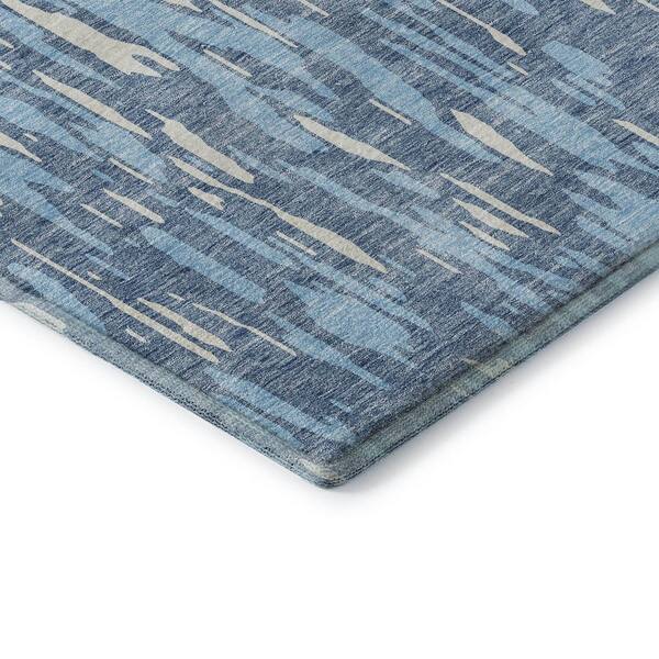 Mayfield Premium Machine Washable Abstract AMF945 Denim 8 ft. x 8 ft. Round Rug