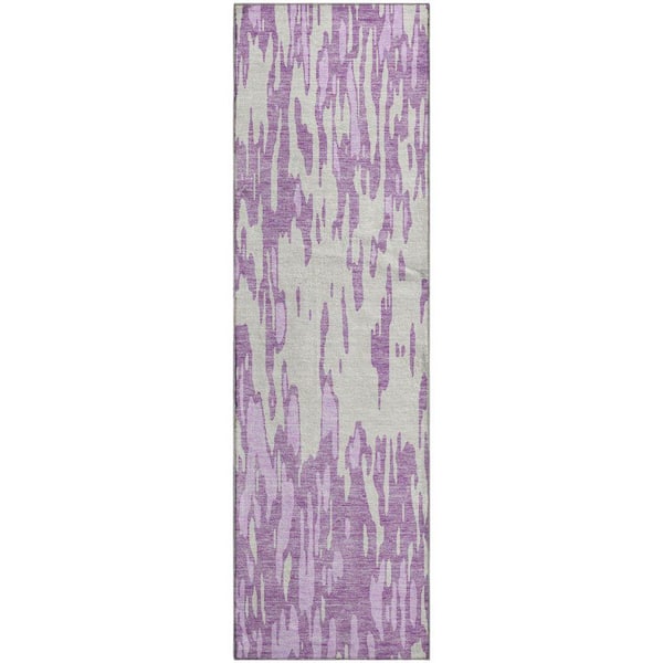 Mayfield Premium Machine Washable Abstract AMF945 Lavender 2 ft. 3 in. x 7 ft. 6 in. Runner Rug