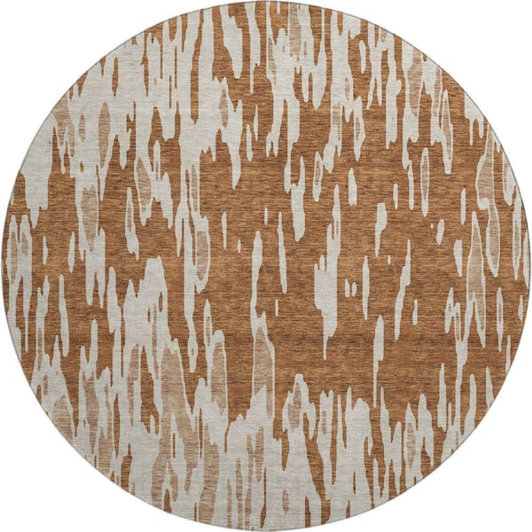 Mayfield Premium Machine Washable Abstract AMF945 Paprika 8 ft. x 8 ft. Round Rug