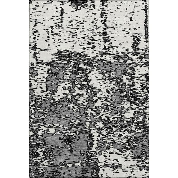 Mayfield Premium Machine Washable Abstract AMF946 Black 3 ft. x 4 ft. Area Rug