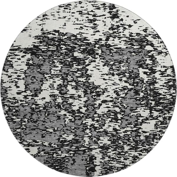 Mayfield Premium Machine Washable Abstract AMF946 Black 8 ft. x 8 ft. Round Rug