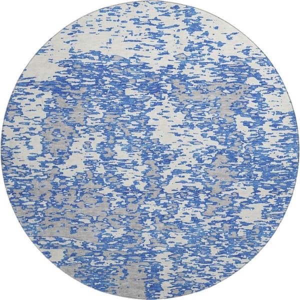 Mayfield Premium Machine Washable Abstract AMF946 Blue 8 ft. x 8 ft. Round Rug