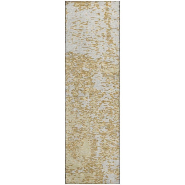 Mayfield Premium Machine Washable Abstract AMF946 Gold 2 ft. 3 in. x 7 ft. 6 in. Runner Rug