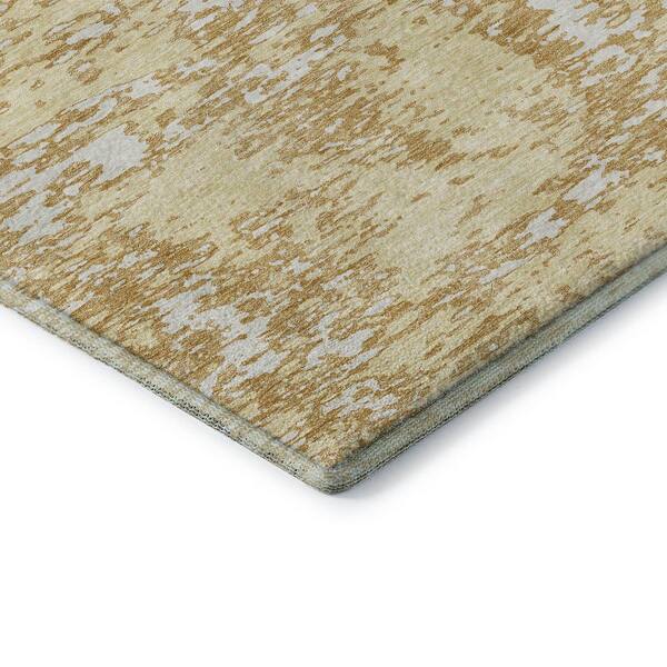 Mayfield Premium Machine Washable Abstract AMF946 Gold 3 ft. x 5 ft. Area Rug