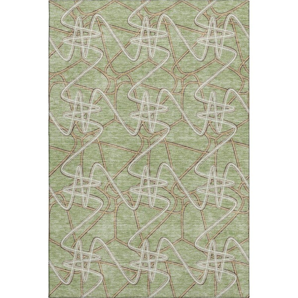 Mayfield Premium Machine Washable Abstract AMF947 Aloe 5 ft. x 7 ft. 6 in. Area Rug