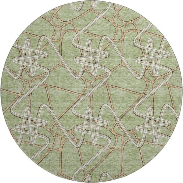 Mayfield Premium Machine Washable Abstract AMF947 Aloe 8 ft. x 8 ft. Round Rug
